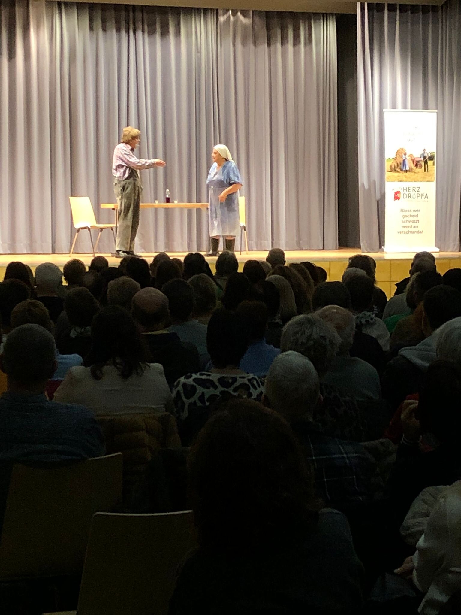 Am 5.12. spielte das schwäbische Kabarett-Duo „Hillus Herzdropfa“ auf Einladung des Schul-und Fördervereins des ABG in Obermarchtal. Sie begeisterten eine restlos ausverkaufte Halle mit ihrem Programm „Durch Digg und Denn“, in dem sie schwäbische Befindlichkeiten aufs Korn nehmen. Nach der Schlussnummer „Landratsamt“ gab es tosenden Beifall für ihren deftigen, aber auch gewitzten Humor. Die Schülerinnen und Schüler der Eingangsklasse sorgten in der Pause für das Catering der Besucher und konnten damit ihre Klassenkasse aufbessern.